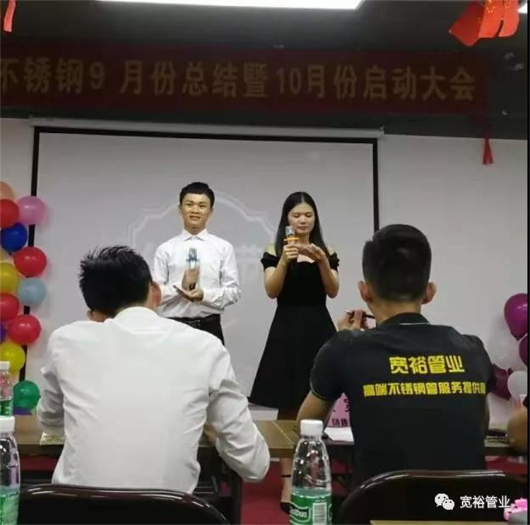 為總結(jié)經(jīng)驗(yàn),鼓舞士氣,更好的迎接未來挑戰(zhàn),佛山寬裕不銹鋼于2019年10月8日18點(diǎn)30分,在總部三樓會(huì)議室順利召開了9月份總結(jié)暨10月啟動(dòng)大會(huì), 共同開啟新的征程。
